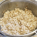 - そば米を水洗いし、500ccの水で8分間炊き、火を止めそのまま30分冷ます。水洗いし、水を切る。