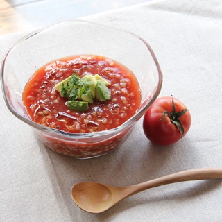 そば米のサラサラとした食感は冷製トマトスープによく合います。食欲の落ちる季節にもピッタリ。