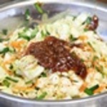 - 1をよく搾り、練りみそ100gにサラダ油と七味唐辛子を加える。