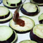 - なすとなすの間に練りみそ8gを挟みます。