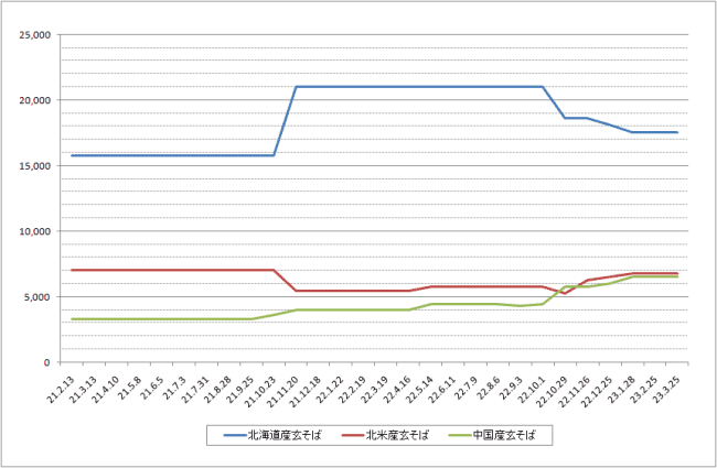 3月25日、日経新聞に玄そば市場価格の掲載がありました。
