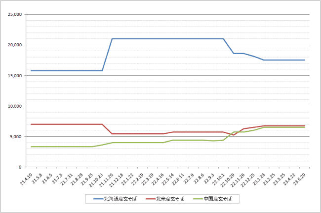 4月22日及び5月20日、日経新聞に玄蕎麦市場価格の掲載がありました。