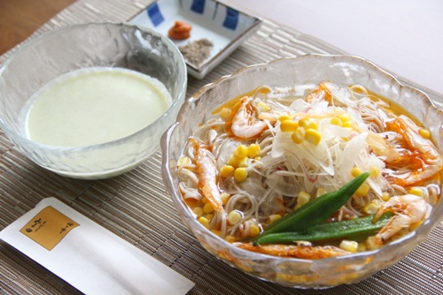 出でよ、水晶冷やしトマトそば(枝豆スープ付き)!!