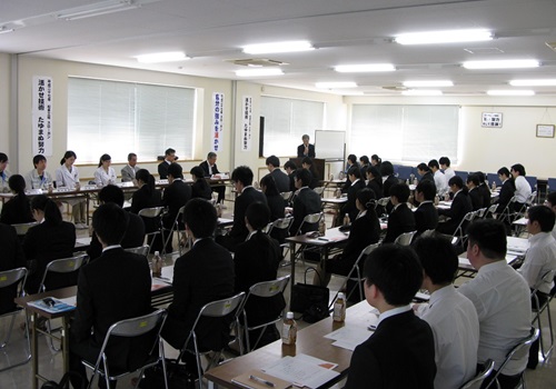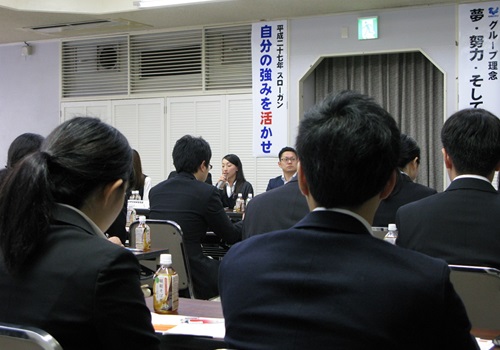 合同企業説明会ではなかなか説明できなかった詳しい内容を!!と言う事で、取締役からの会社概要説明に加え、それぞれの部署の第一線で活躍している先輩社員からも日々の業務内容について説明をしてもらいました。