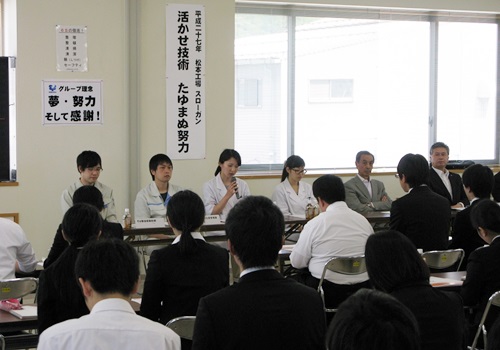 先輩社員の話を聴く学生さん達の表情は真剣です。