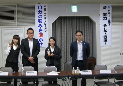 本社では、東京営業所、経理部、総務部、受注センターの4名の先輩が、詳しく分かりやすく、業務の説明や学生さんからの質問に答えさせていただきました。