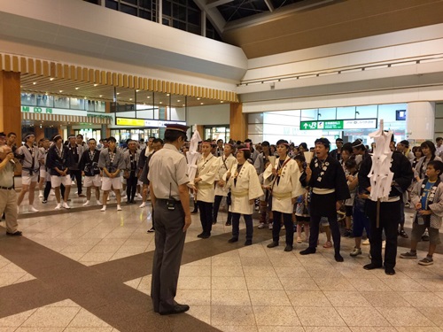 こちらはJR長野駅構内にて、木遣りを歌うシーン。