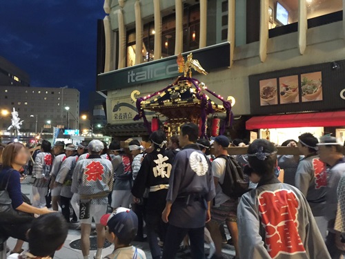 祭りが終わるころには神輿を担ぐ肩が非常に痛くなりますが、参加者同士で声を掛け合い、楽しんでお神輿を担ぐことが出来ました。