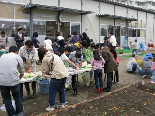 園児+卒園児+親・兄弟+先生方・・・総勢約80名での芋煮会です。