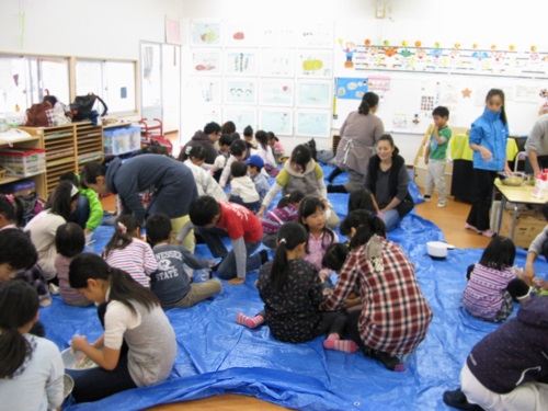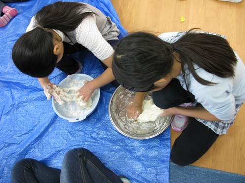 8月の手打ちうどんに続き、今回も粉を担いで長野市内某幼稚園にお邪魔しました。