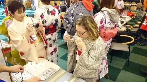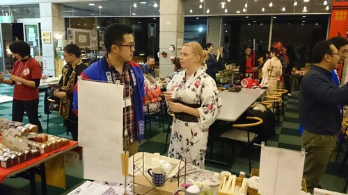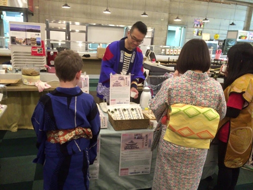 会場内では餅つき、和太鼓、着物、茶道の体験コーナーが準備され他にも、けん玉や駒、だるま落としなどで遊ぶコーナーもあってご家族や友人・カップルでもお楽しみいただける内容となっておりました。我々を含め他のスタッフの方たちも気合が入る中、いよいよ開場となりお客様のご来場!