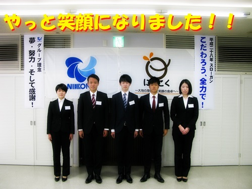 4月1日に入社した5人の若者。