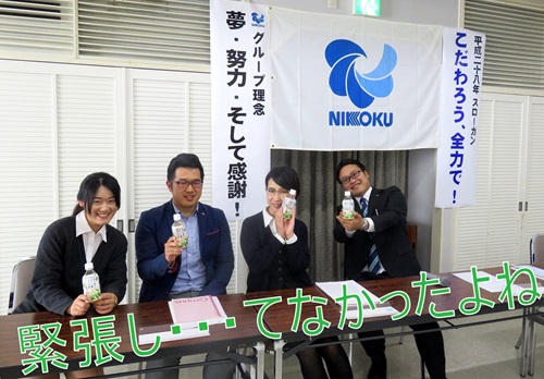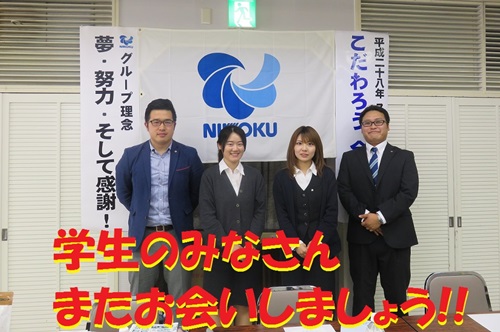 午前と午後、2回の会社説明会を終えて、ホッと安心の先輩達です。