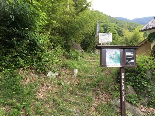 最初は木々の生い茂る林道のような道を進みますが、すぐに登り道が姿を現し、日ごろの運動不足もあってか、さっそく息が切れます...。