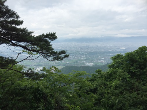 尾根から北の方角を見ると眼下には善光寺平が見渡せるようになりました。
