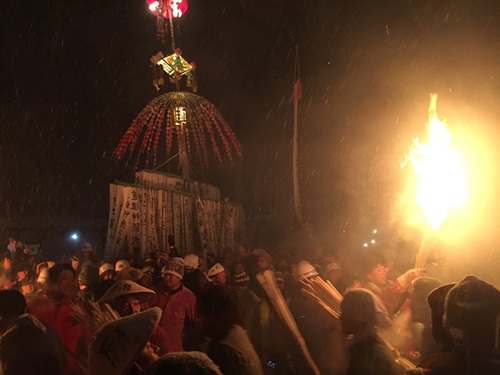 雪が降り続き、多くの見物客が見守る中、祭りは徐々にクライマックスへ近づいていきます。