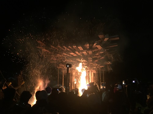 雪に覆われた村は勢いよく燃え上がった社殿があるこの広場だけ、何か特別な雰囲気に包まれているようでした。