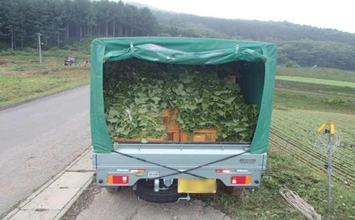 刈り取り後、およそ6kgの束にして、軽トラックの荷台に積みこみました。