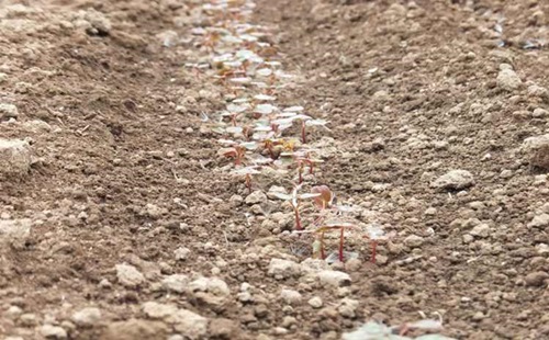 5/29、5/30に十観原地区の1・2号畑に播種した韃靼そばの発芽が発芽致しました!一直線に1cmほどの芽が顔を出しておりました。