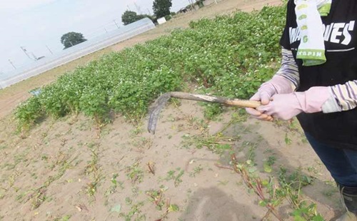 4/25(火)に植え付けたジャガイモの根元に土寄せを行いました。