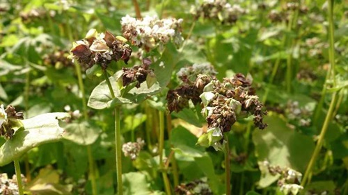 収穫まであと少しという大変見事なそばの実。1房で20粒ほどが収穫できるのだそうです。