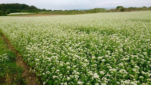 今シーズンは100haほどの土地にそばを播種されたそうでここまで作柄は上々とのこと。現状では10a当たり2俵は収穫が出来るのではないかとの情報をいただきました。