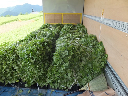 収穫したそばの若葉は日穀製粉で取り扱う「ハイルチン」という製品になる予定です。