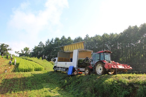 この日は朝7時頃から若葉の刈り取り作業を行いました。