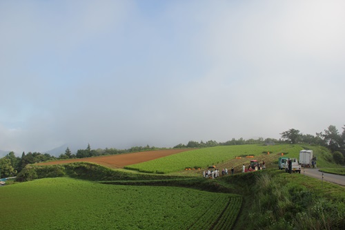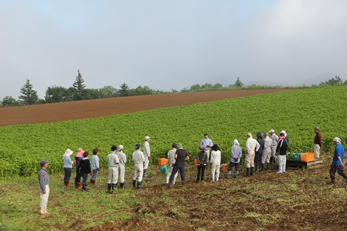 早朝から、お手伝いの方々と畑へ向かい、まずは刈り取り前に全体ミーティングをしました。