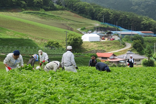 7月上旬にファームめぶきが管理する長野県筑北村のそば畑で、【そばの若葉】の収穫作業を行いました!