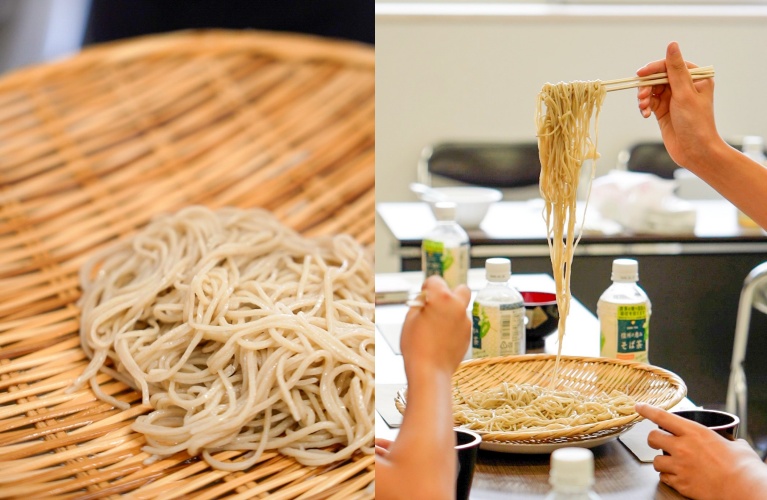 見学の後は、にっこくのそば打ち名人が朝から打ってくれた手打ちそばでお昼ごはん!
