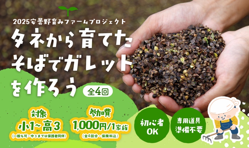 そばの種まきから収穫までの一連の農業体験と収穫したそばでガレットをつくる「育みファームプロジェクト」。