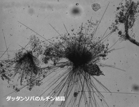 この研究の中で、ダッタンソバについてはルチンが結晶化することでざらざらした食感になることが判り、またルチンが多量に溶出してしまう「茹でる」という作業に関してはグルテンや卵白を使うことによってその溶出が抑えられるということも判ってきました。