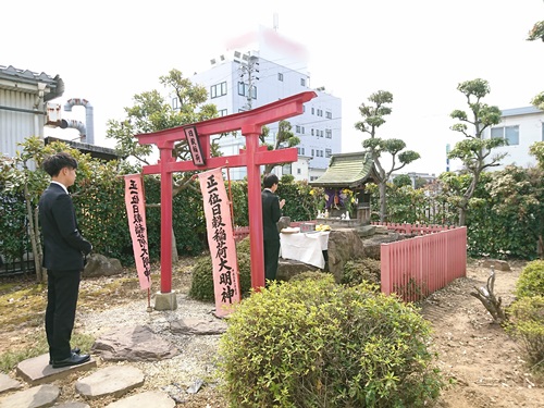 入社式の後は恒例の日穀稲荷への参拝。