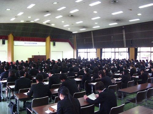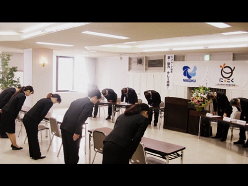 社長からの訓示を真剣な表情で胸に刻む新入社員。