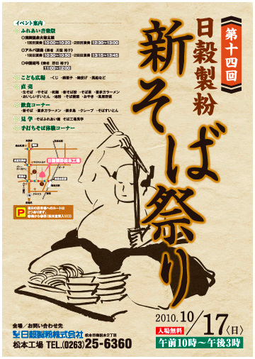 日穀製粉株式会社 松本工場において、毎年恒例の「第14回 日穀製粉 新そば祭り」を開催します。