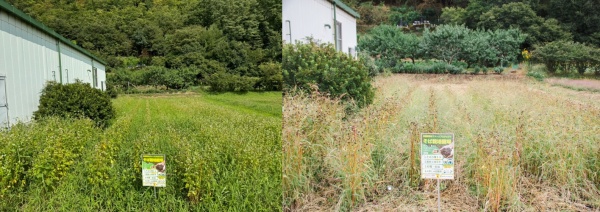 さわやかな秋風が吹く畑には、青々としたそば畑からすっかり姿を変えた光景が広がっていました。