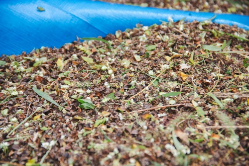 茎や葉などが一部混ざっていますが、機械の中である程度の選別が行われ、不要な葉やゴミなどはすでに取り除かれています。