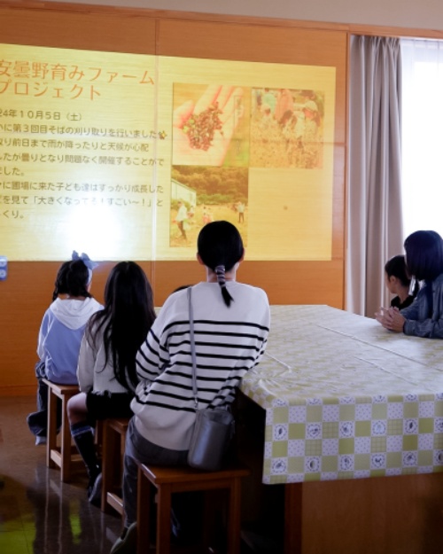 緊張しながら、育みファームで感じたことを答えてくれていました。