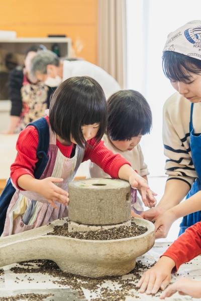 そばの種まきから収穫までの一連の農業体験と収穫したそばでガレットをつくる「育みファームプロジェクト」。