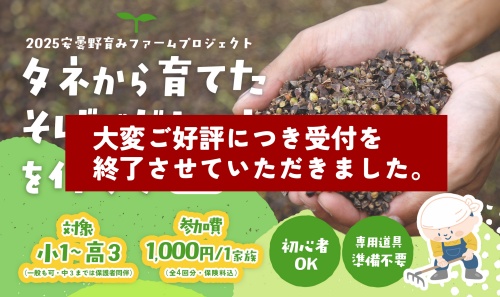 小学校1年生~高校3年生までを対象に農業の楽しさとそばの美味しさを体験する農業体験イベントです。