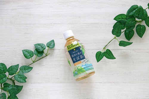 歩いたらそば茶で水分補給(原料に赤そばは使用しておりません)