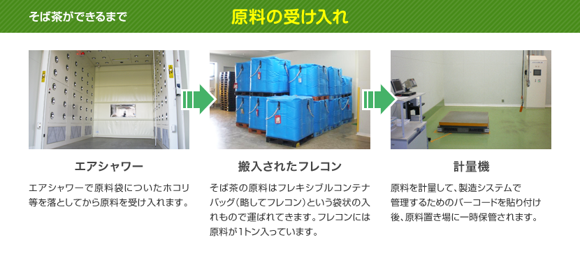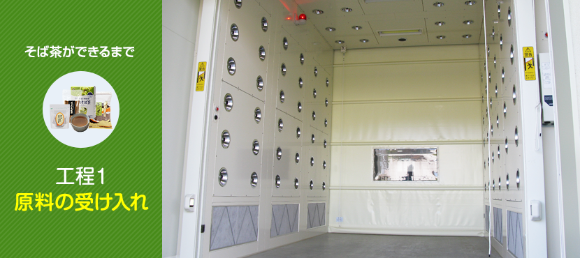 原料である「そばの実」を搬入し、次の工程開始まで保管します。