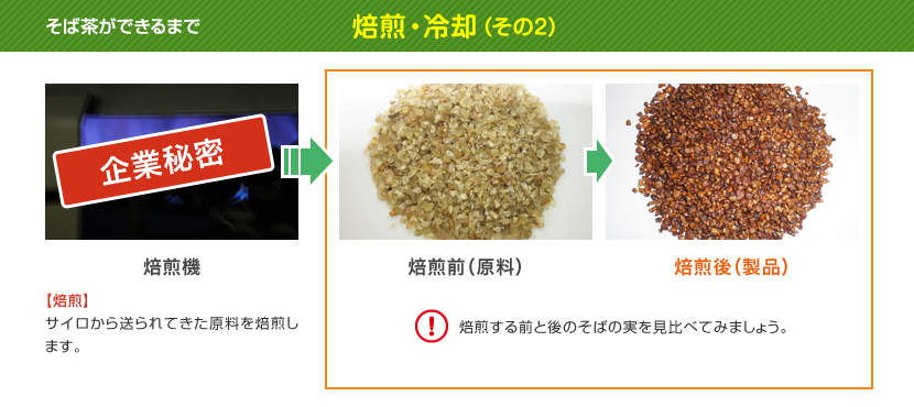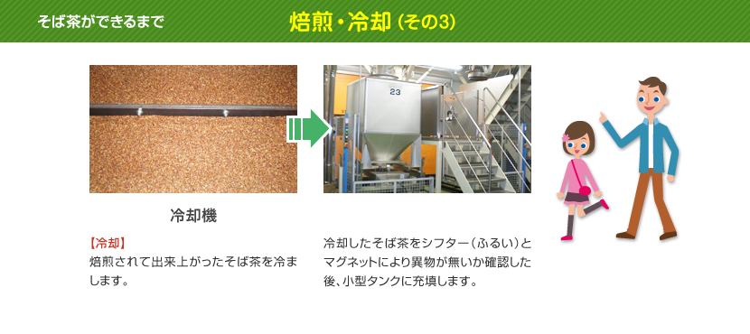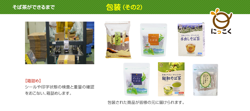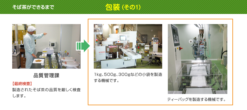 そば茶を確認し、異常がなければ、そば茶の中身が完成します。