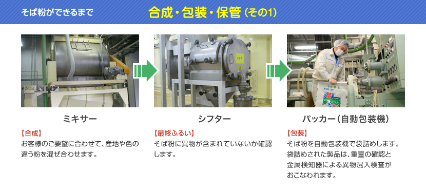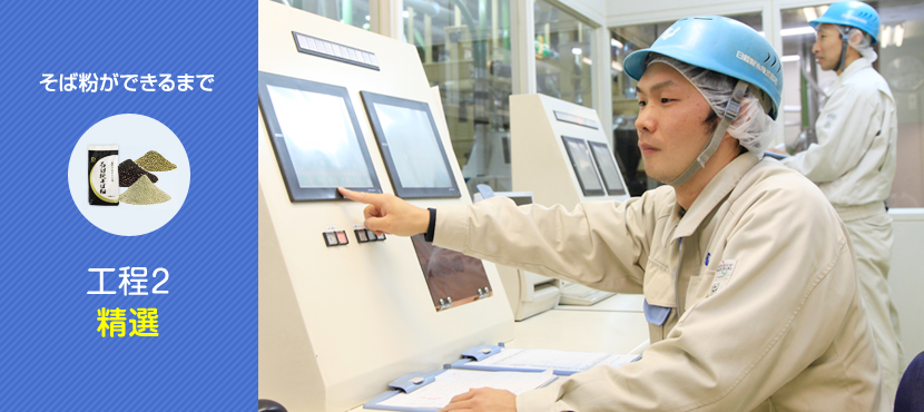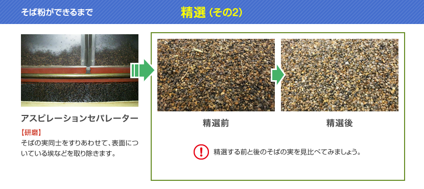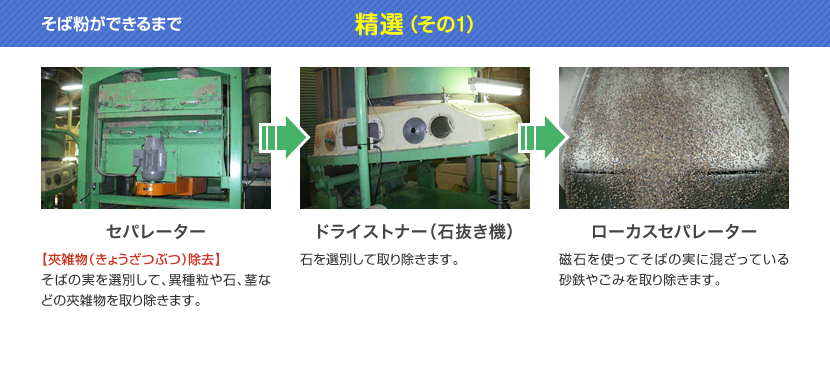 数種類の機械を使って、そばの実に混ざっている異物を取り除きます。
