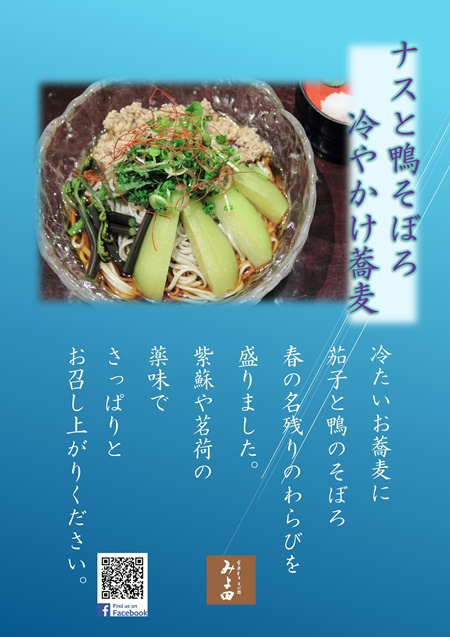 つけ汁に鴨ミンチの山椒煮を入れました。