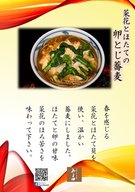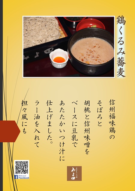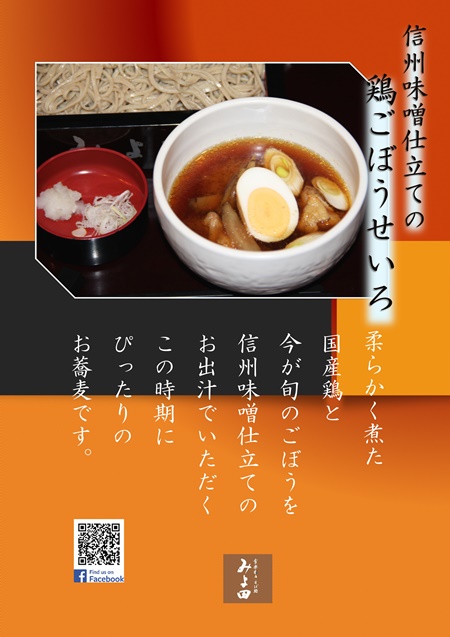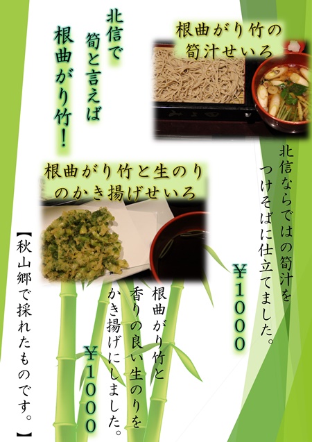 信州名産の野沢菜漬けの温かい蕎麦にしました。