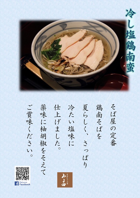 冷たい蕎麦に水々しい水菜と鶏ムネ肉を