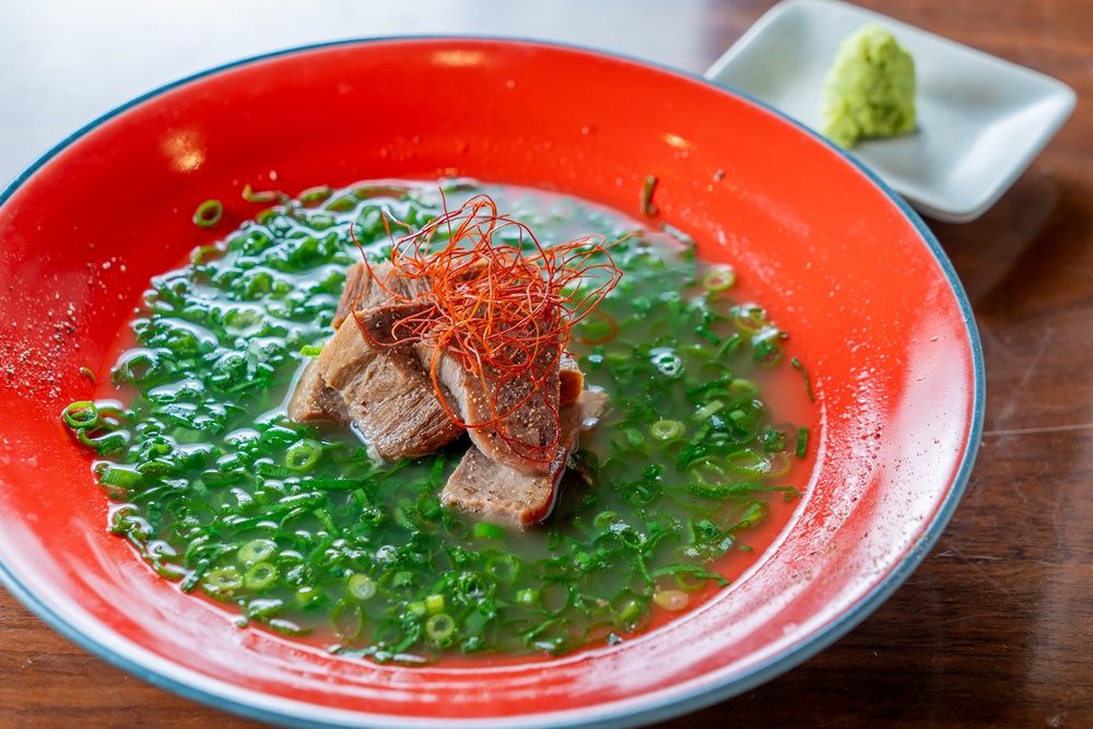 つけ汁には黒豚の背油を加え、コクのあるまろやかな味わいに仕上げました。