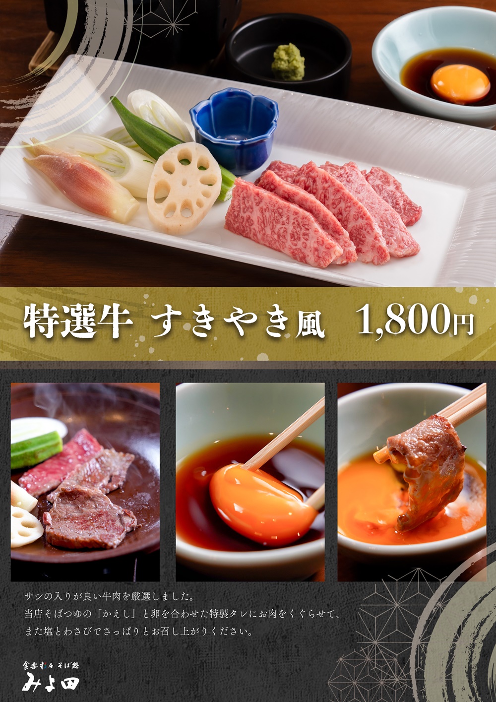 温かいつゆに溶け出した信州りんご和牛の脂の旨みと、すんきの独特な酸味の相乗効果でクセになる味わいです。